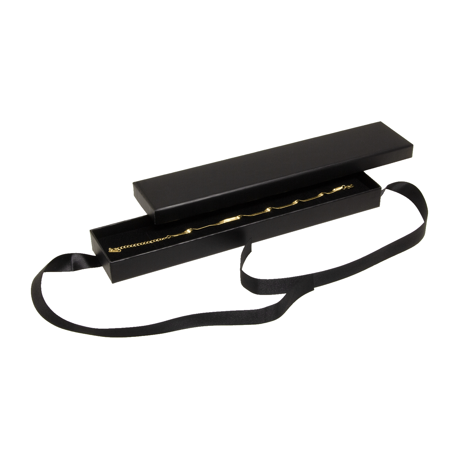 Las Cajas de joyas de la serie 0276 LOOP en diseño negro ofrecen una solución de embalaje elegante y estilizada para pulseras y relojes. Con unas dimensiones de 255 x 50 x 20 mm, ofrecen espacio suficiente para sus piezas de joyería de alta calidad. En el interior de las cajas se encuentra un inserto de espuma laminada en negro, que mantiene sus productos seguros y protegidos. Además, las cajas pueden personalizarse individualmente con un estampado en caliente. Elija entre oro, plata, negro o casi cualquier color que desee. Si es necesario, también se pueden realizar impresiones multicolores por un costo adicional. Las Cajas de joyas de la serie 0276 LOOP son la elección ideal para joyeros, orfebres y marcas de joyería que buscan una solución de embalaje de alta calidad y atractiva. Realce sus productos con estilo e impresione a sus clientes con estas exclusivas cajas.